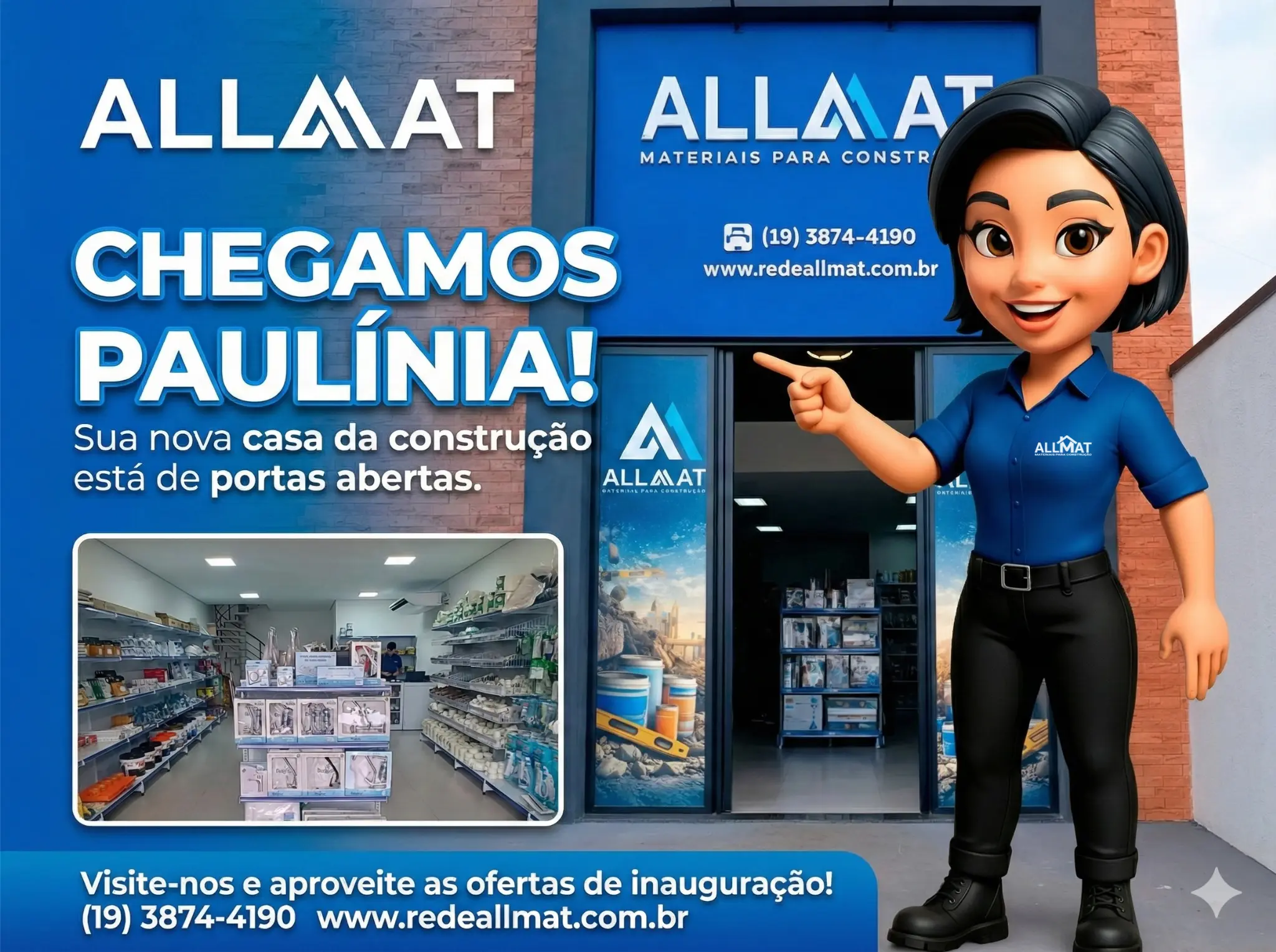 Invista em um negócio sólido, rentável e em constante crescimento no setor da construção. Com a força da marca Allmat, você terá suporte completo, ampla variedade de produtos e a confiança de atuar em um dos mercados que mais cresce no Brasil.